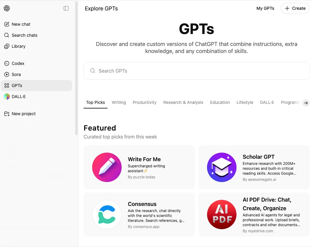Extend ChatGPT’s functionality using third-party plugins or create custom GPTs tailored to your workflows.